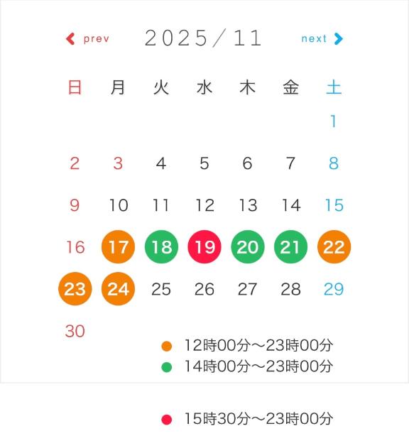 | 11月18日(火) | - |